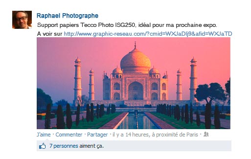 Exemple d'une page Facebook avec un lien d'affilié vers Graphic Réseau.